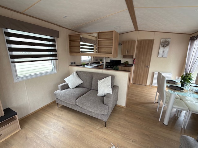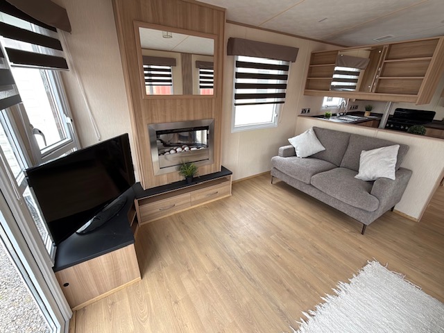 static caravan with 3 bedrooms, living room, fitted kitchen and bathroom
