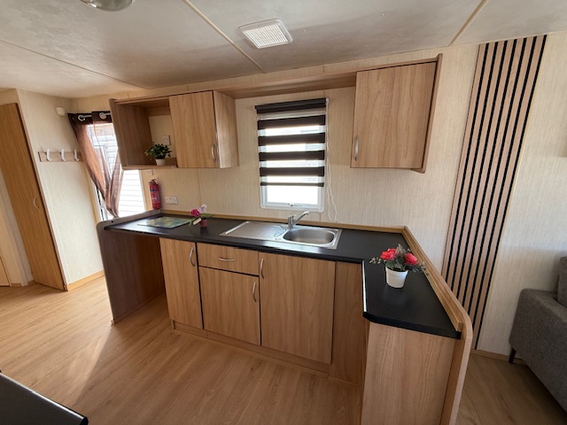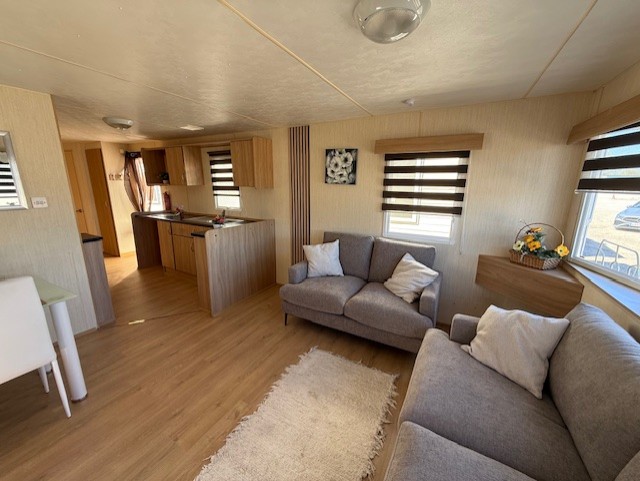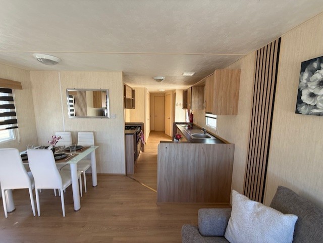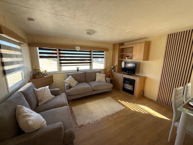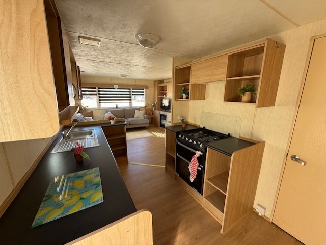 static caravan with 3 bedrooms, living room, fitted kitchen and bathroom