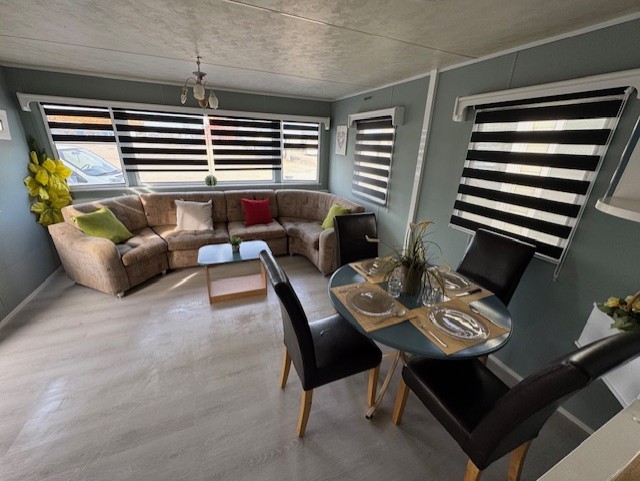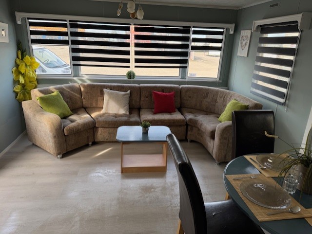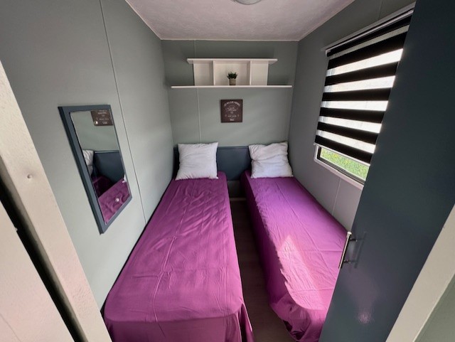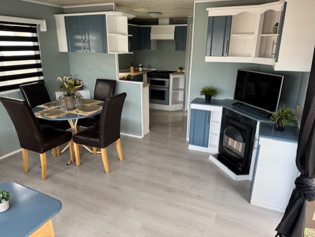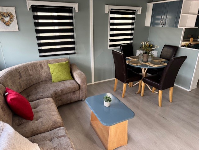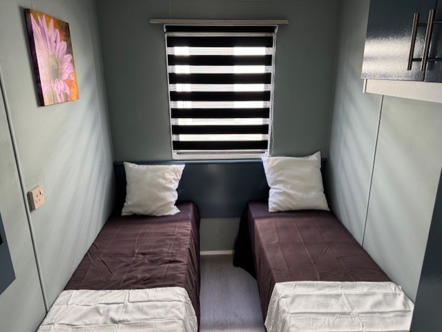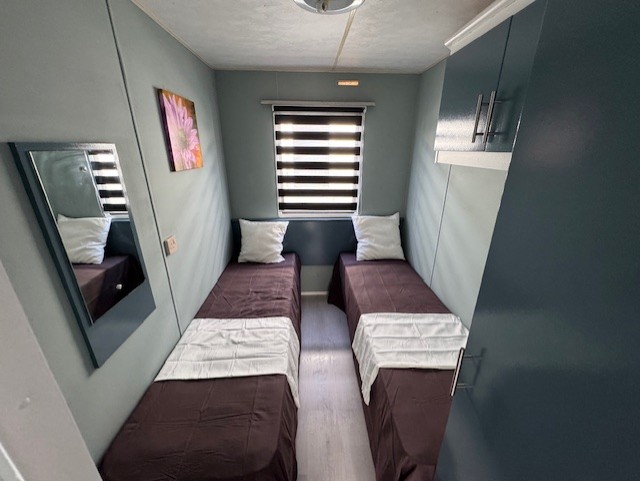 static caravan with 3 bedrooms, living room, fitted kitchen and bathroom