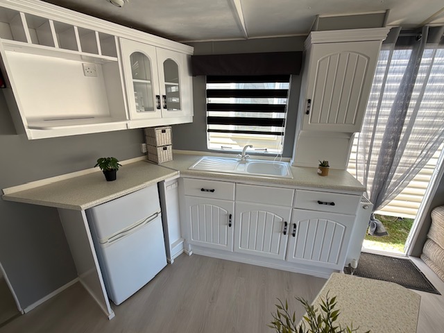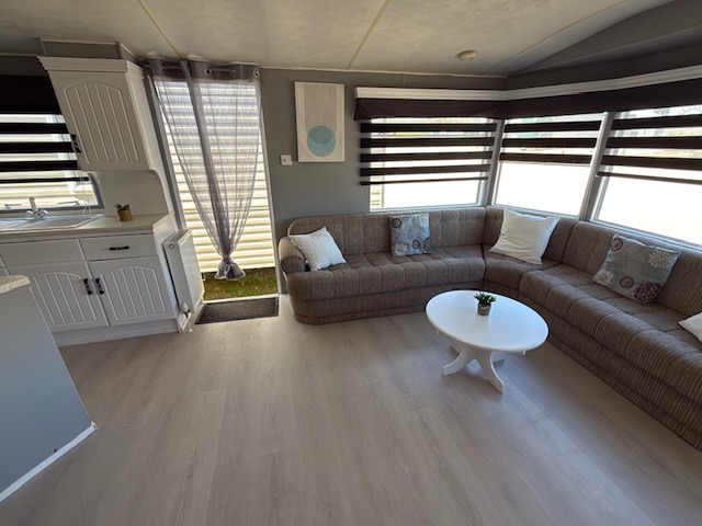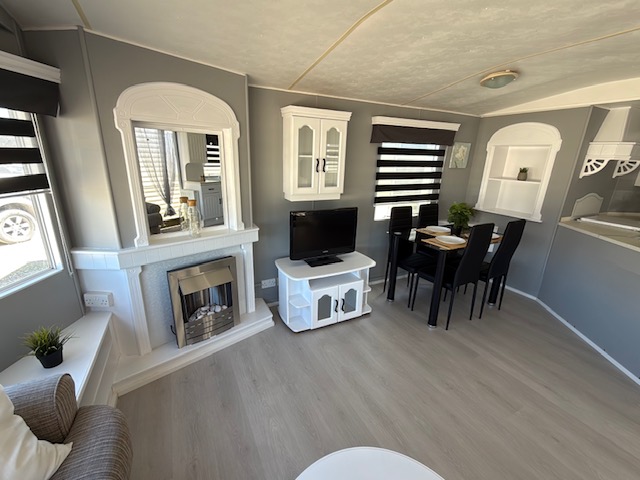 static caravan with 3 bedrooms, living room, fitted kitchen and bathroom